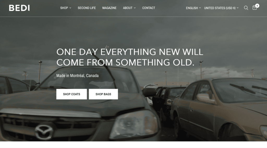 - Secondly, the brand takes many approaches beyond salvaging and upcycling existing materials to minimize waste. They employ technology to determine the optimal layouts to keep excess fabric as small as possible. In particular, small fabric scraps from cutting are used to make bag sections and keychains. Furthermore, they make everything in small batches, enabling real-time adjustments to minimize waste. And their efforts to reduce waste don’t stop when their products leave the store. In fact, BEDI offers a lifetime guarantee on all outerwear and bags with which they fix broken items for free, keeping them in circulation longer. Their “Second Life” program enables customers to return any BEDI products to be refurbished and resold.